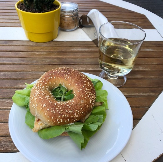 Tym razem wybrałem sezonowego bajgla z szparagami. Dla mnie rewelacja. Dodatkowo przy tej pogodzie wcześniej zarezerwowany stolik z wskazaniem o miejsce na dworze bardzo zaoszczędził mi czasu!