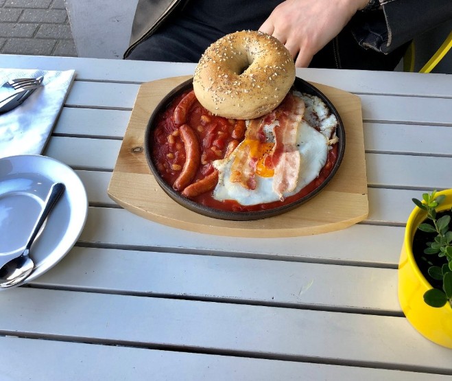 Nie polecam. Jakość bajgli spadła na przestrzeni długiej działalności lokalu. Bajgle są małe, niedopieczone, niesmaczne. Bazowy produkt tego miejsca - rozczarowanie. W weekend nie serwują śniadań - absurd! Na 2 małe bajgle czekaliśmy ponad pół godziny (deklarowany czas:20min). Lokal mały, ale nie przytulny: ciasny i przeraźliwie głośny. Roztrzepana obsługa. Ubrania przesiąkły zapachem tłuszczu. Szkoda pieniędzy i czasu. Zdecydowanie polecam inne śniadaniówki na mieście.