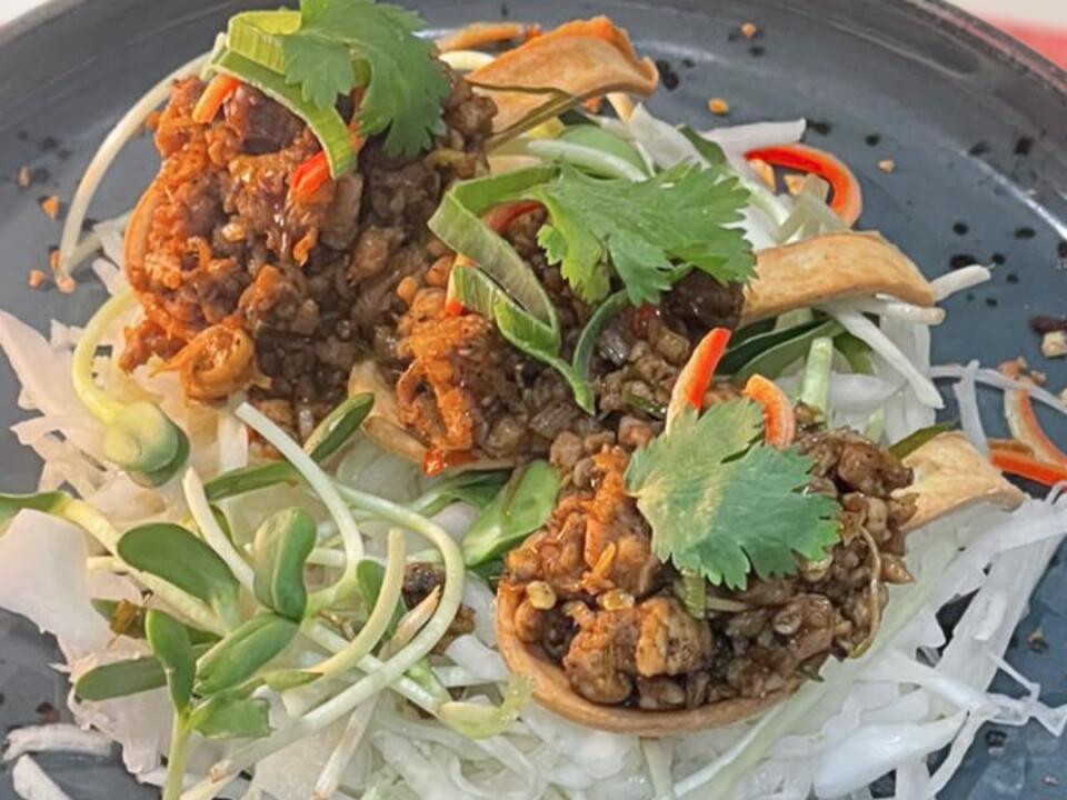 dry-curry style from Thailand's southern regions, served with crispy vegetables (3 pieces).