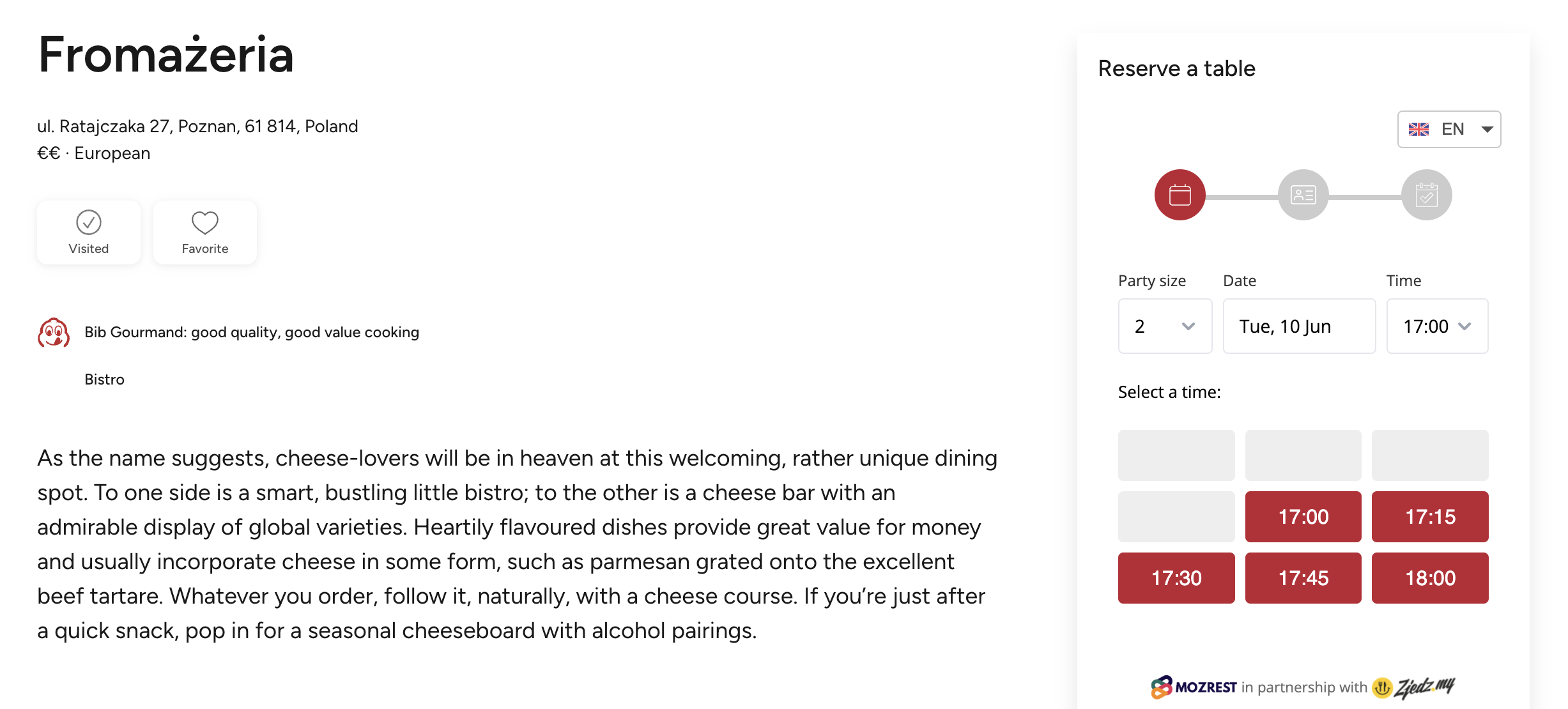 Przypominamy, że dzięki współpracy Zjedz.my i Michelin, nasze restauracje zyskują możliwość bezpośredniej rezerwacji ze strony przewodnika.