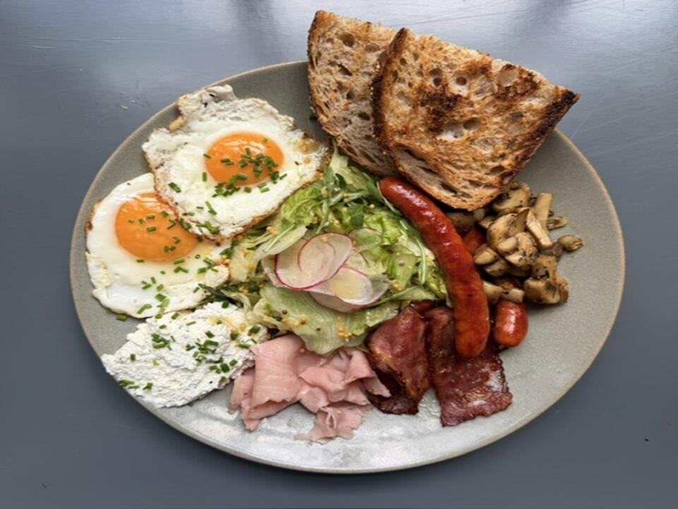 Jedzenie było smaczne, jednak jajka w koszulce były niestety ugotowane na twardo na wszystkich trzech talerzach.