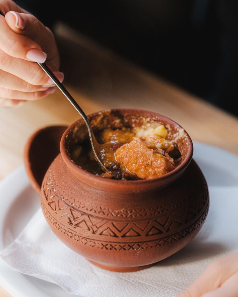 Głównym elementem sukcesu są smaczne i niedrogie posiłki. Menu mieści się na jednej stronie i składa się z hitów kuchni gruzińskiej: chinkali, chaczapuri, dań z grilla, charczo, warzyw i ziół, wina i gruzińskiej czaczy.