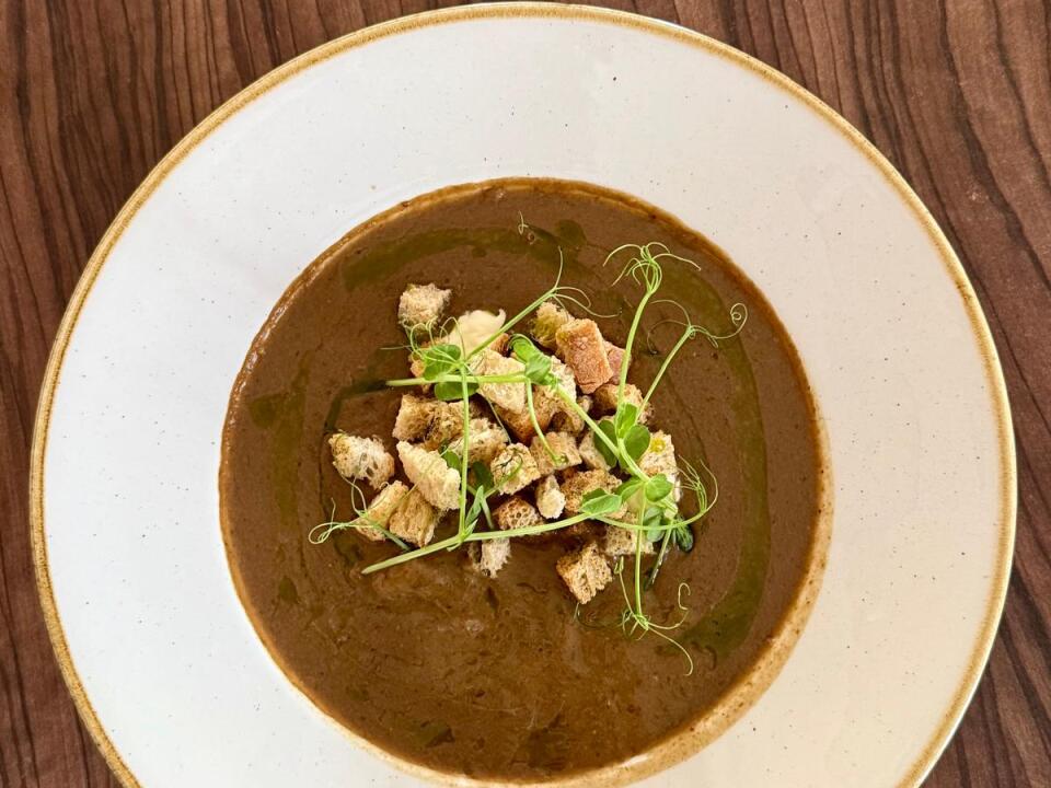 Cremesuppe aus Waldpilzen mit Kräuter-Crouton
