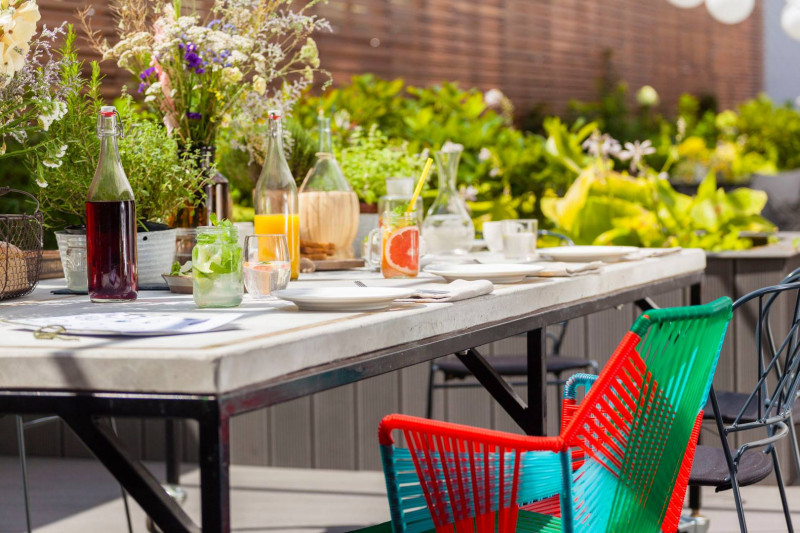 Latem zapraszamy na skryte pośród poznańskich kamienic patio. Poczujecie tam prawdziwie wakacyjny klimat! W zacisznym, wypełnionym bujną roślinnością ogrodzie jest niezobowiązująco i beztrosko. Polecamy się na śniadania, lunche, kolacje i ...drinki! Osłonięte zadaszeniem stoliki dają przyjemny cień za dnia, wieczorem nad głowami zapalają się girlandy świateł.