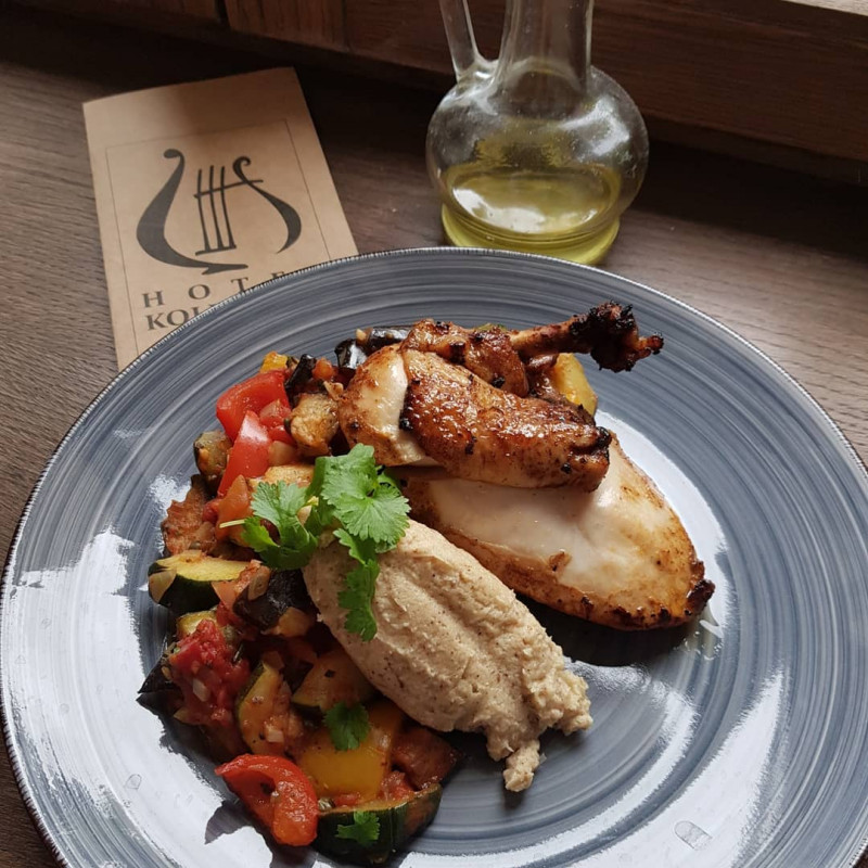 Pyszna ryba,kurczak amaretto bardzo dobry. Ziemniaczki na przystawkę zostały podane dopiero z głównym daniem,jeden był twardy, główne danie dla mnie i dziecka podane po 1 godzinie od zamówienia mimo małego natężenia ruchu, kelnerka zapomniała o głównym daniu dla męża, więc czekał 2 h, w związku z tym dowiedzieliśmy się że mamy się przesiąść na dół, bo nasza rezerwacja była na 2 h i mąż nie zdąży już zjeść - finalnie zostaliśmy na górze, bo były miejsca. Za całą tę sytuację nawet przepraszam nie usłyszeliśmy. Z każdej strony atakowały osy, pod deskami tarasowymi możecie spodziewać się gołębi, kelner pozwolił palić na tarasie gościom ze stolika obok, byliśmy z małym dzieckiem i nie było tam oznakowania, że jest to wydzielony obszar dla palących