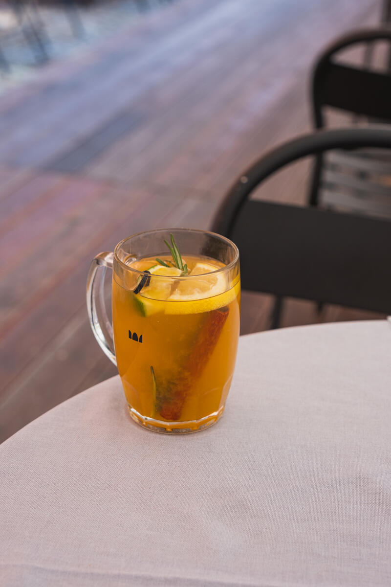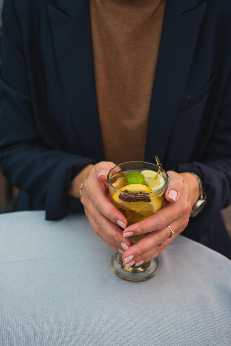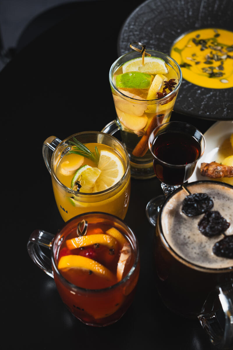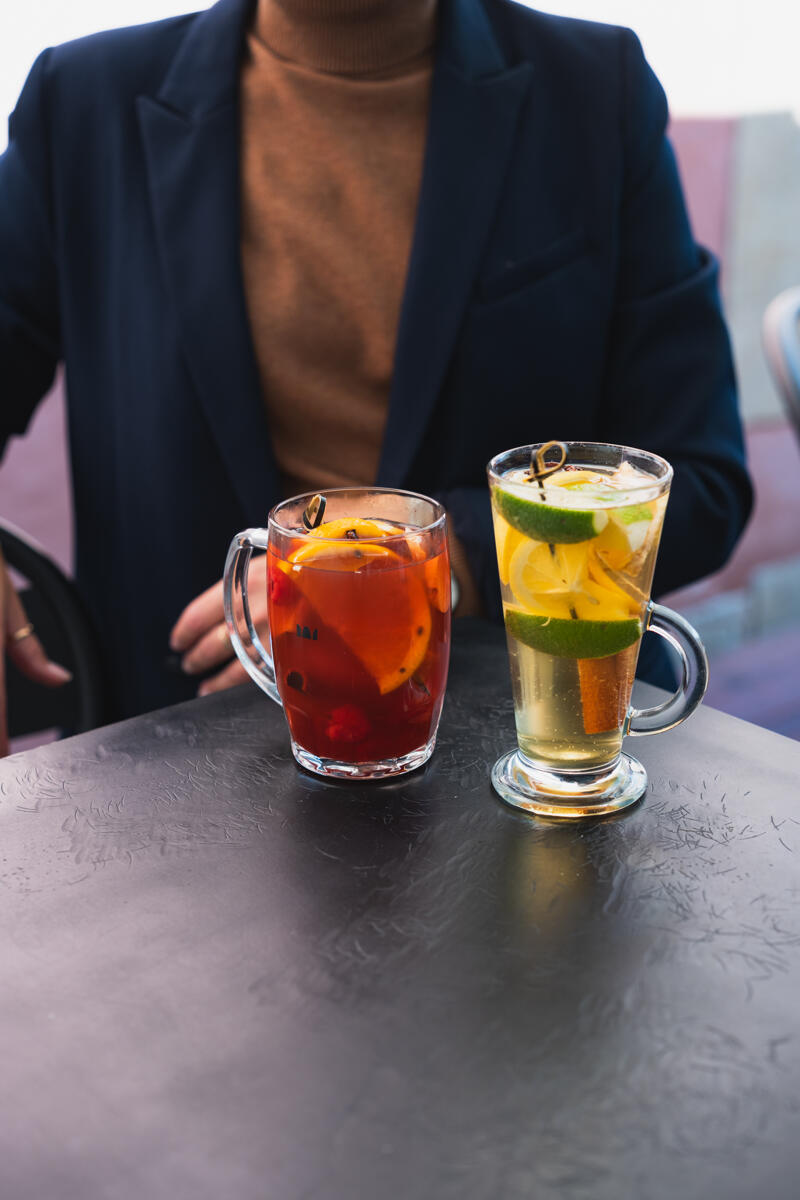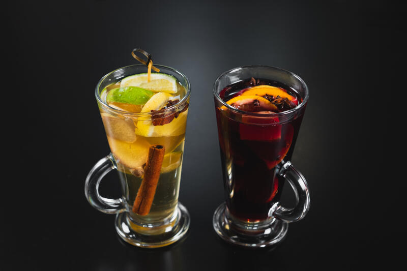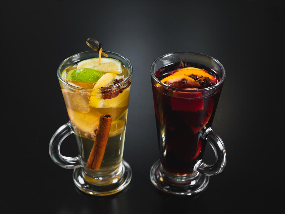 Red: 150ml wine, honey, orange, ginger, cloves, cinnamon, anise, lemon