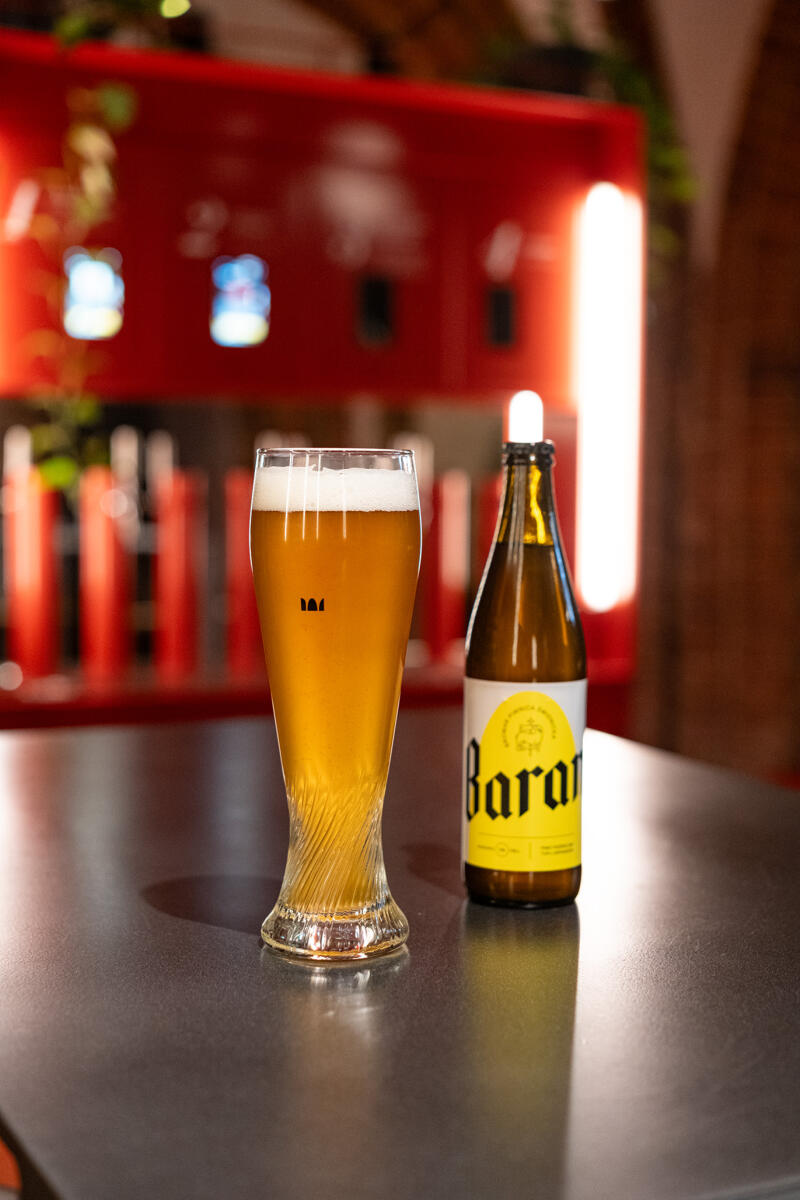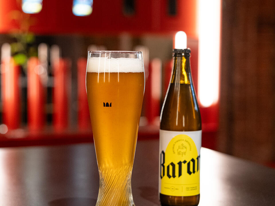2. Baran - Hefeweizen wheat beer, extract 12.5 wt., alcohol 5%. A top-fermented beer with a characteristic aroma of bananas and cloves. Very mildly hopped, with a refreshing, slightly sour aftertaste. Naturally cloudy from yeast. Ideal with seafood, fish, pasta and poultry.