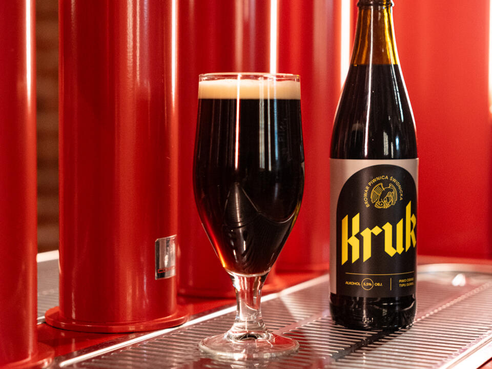 3. Kruk - Dunkel type dark beer, extract 13.5 wt. Blg, alcohol 5.5%. Dark bottom-fermented beer with aromas of dark chocolate, coffee and pumpernickel. Subtle sweetness well balanced with hoppy bitterness. An ideal companion to game, beef and mushroom dishes.
