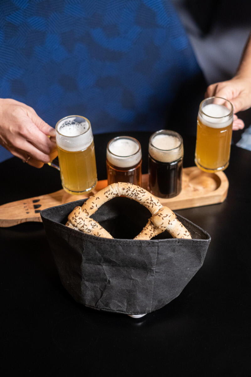 A classic pale bottom-fermented beer originating in Pilsen, Czech Republic. Golden, clear, with a distinct hop bitterness. Perfect with schnitzel, pork knuckle and pretzel. Extract 12 wt, alcohol 5%, Ingredients: water, barley malt, hops, yeast. Unfiltered. Unpasteurized.