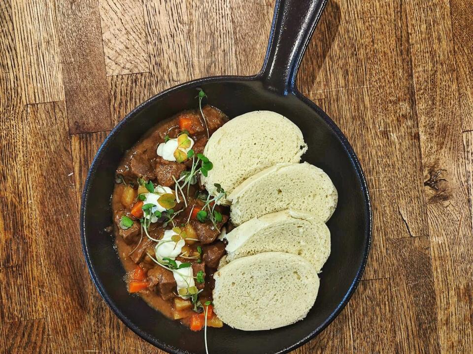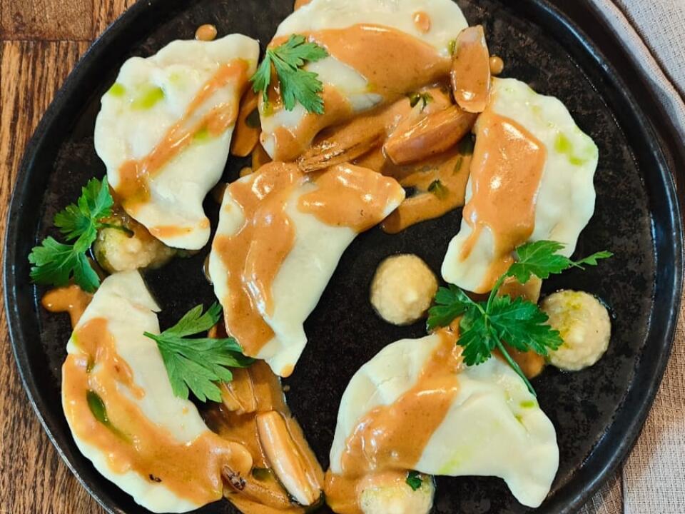 dumplings, sour cream, parsley
