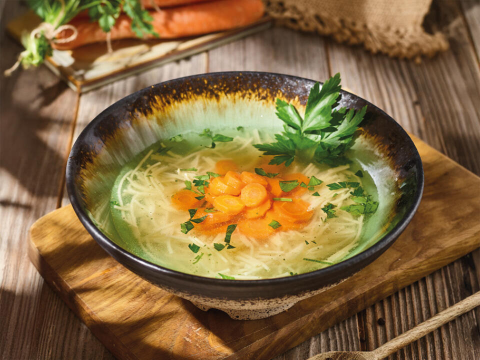 szyjki indycze, marchewka, seler, korzeń pietruszki, natka pietruszki, por / 300 ml