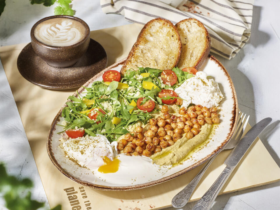Śniadanie marokańskie z humusem i jajkami poche