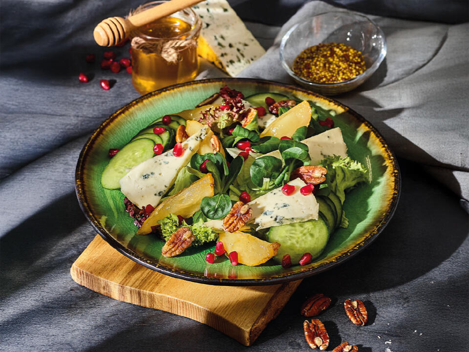 SAŁATA FRANCUSKA Z GRUSZKĄ, SEREM LAZUR i ORZECHAMI