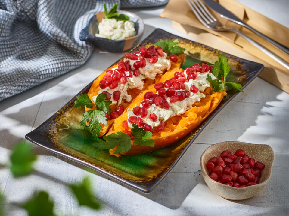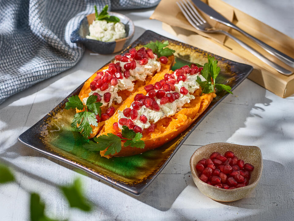 pieczony ziemniak, ser cheddar, masło osełkowe, salsa z pomidorków koktajlowych w oliwie z oliwek,