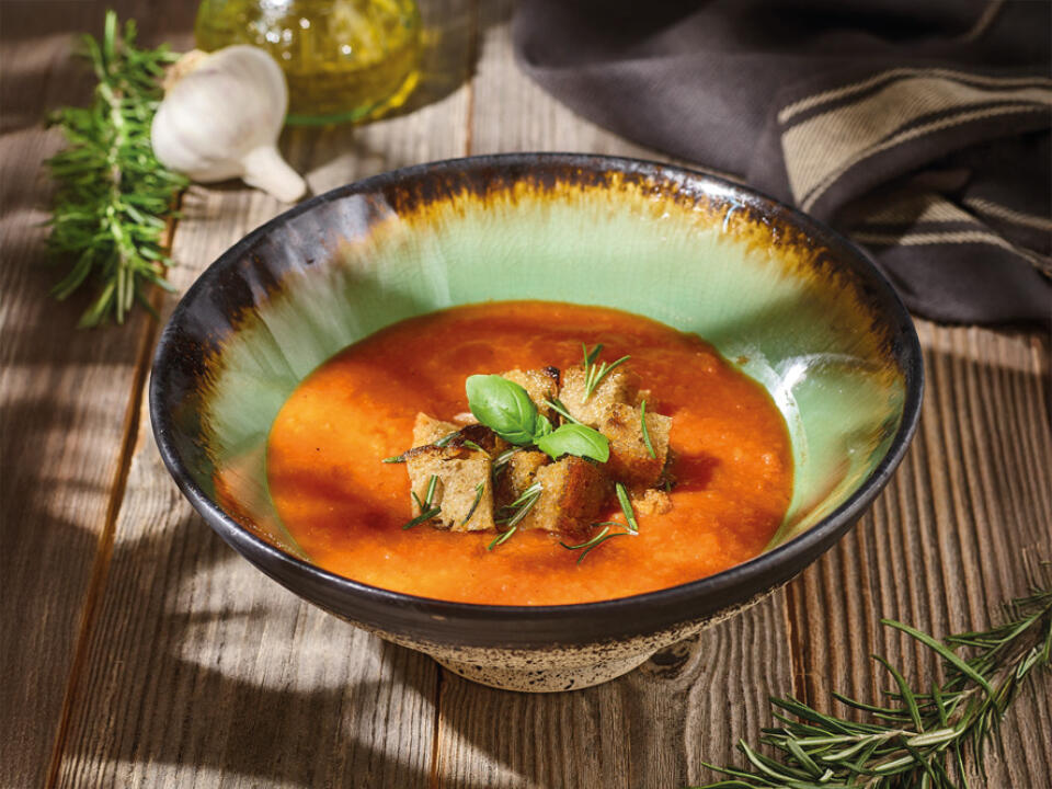 WŁOSKI KREM Z POMIDORÓW Z GRZANKAMI