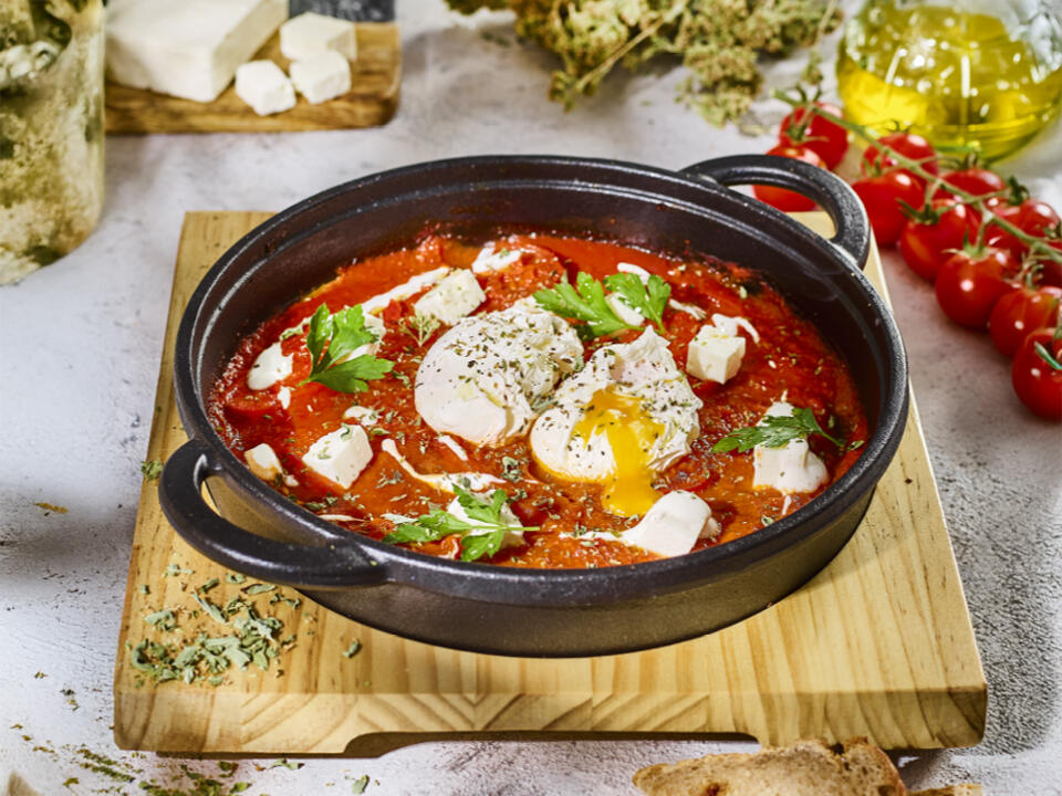 Szakszuka z jajkiem poche i serem feta