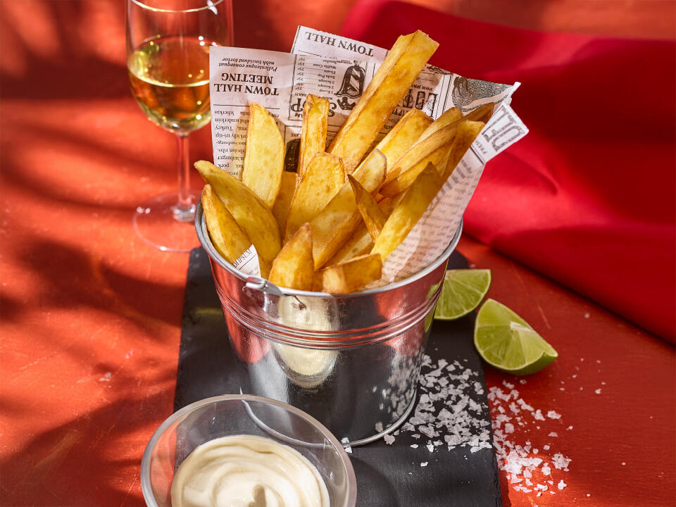 groszek i kukurydza, sos czosnkowy, koperek, sól w płatkach Maldon, pieprz młotkowany / 570 g