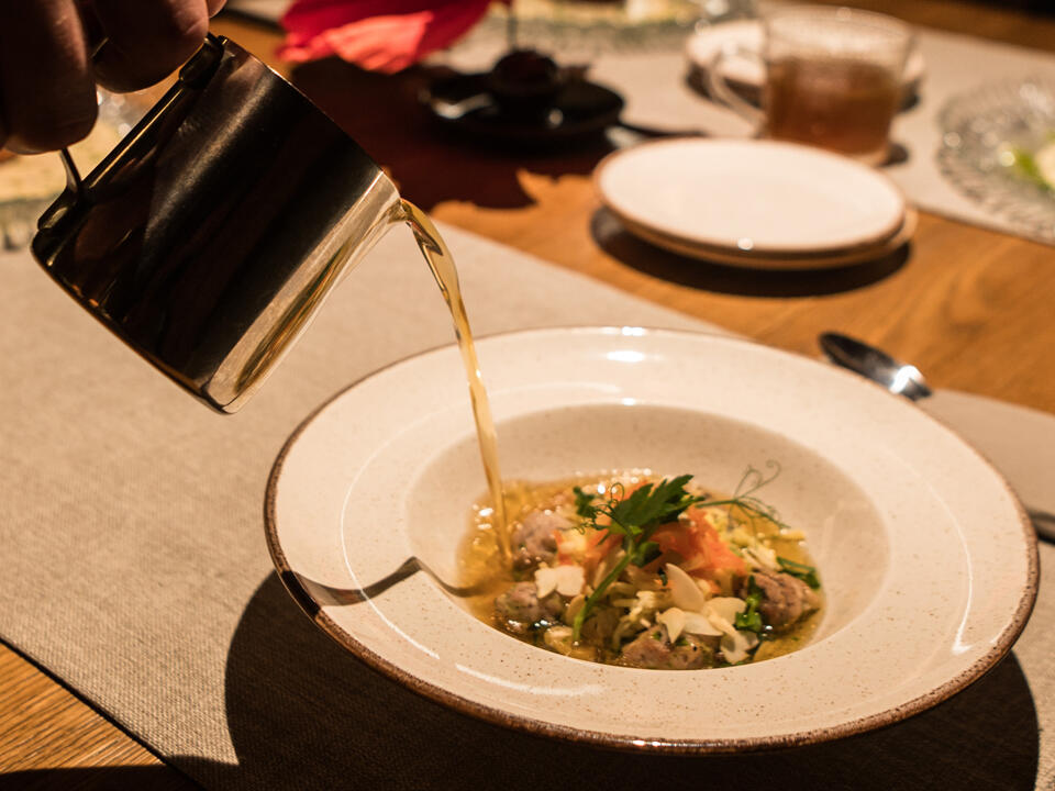 Restauracja Spichrz słynie z dań kuchni polskiej i myśliwskiej. Naszą bazą są staropolskie receptury i czerpanie z tradycji regionu, które z odwagą łączymy z nowatorskim podejściem do gotowania. Doceniamy ekologicznych, regionalnych dostawców, to z nimi nawiązujemy najtrwalsze współprace. Chętnie wracamy do domowych przysmaków: twarogi, oleje, octy, pasztety, przetwory warzywne, nalewki i likiery – przygotowywane są w Spichrzu lub w naszym siostrzanym hotelu – Osada Karbówko Wellness & SPA. Restauracja szczyci się również niepowtarzalnym klimatem. Znajduje się w 300 - letnim spichlerzu, a drewniane odrestaurowane stropy i filary, oryginalne koło młyńskie oraz ludowa muzyka na żywo dodają jej niezwykłego charakteru.