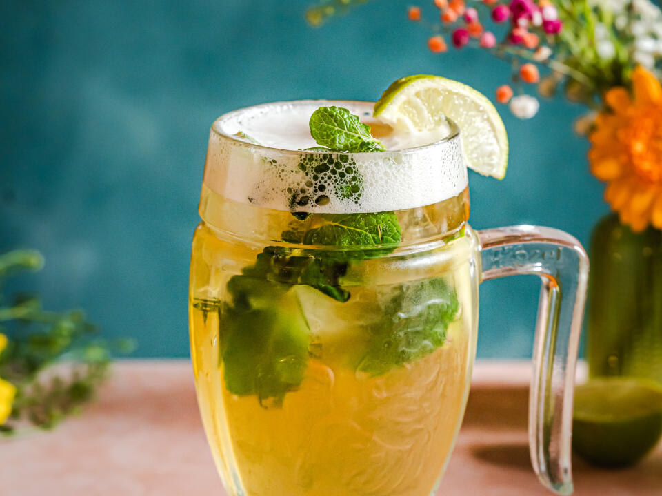 classic lemonade, ice, citrus fruits, mint