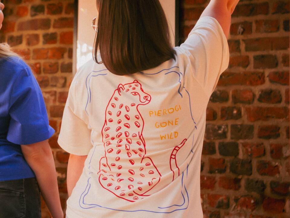 Z tyłu – lampart z printem złożonym z miniaturowych pierogów imitujących cętki. Z przodu – minimalistyczna grafika lamparta. Dzikość skończonej 18-stki i humor spotykają się tu z wygodą i stylem.