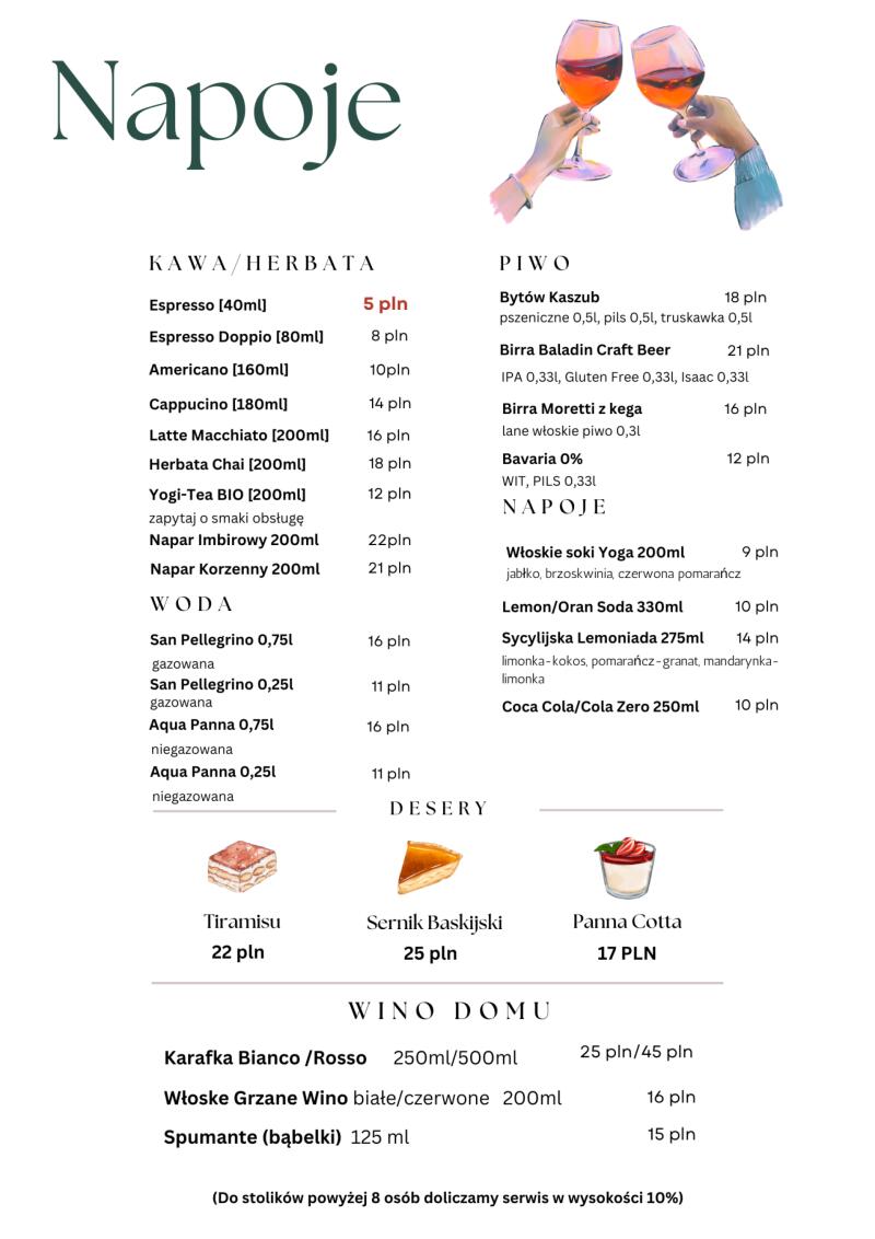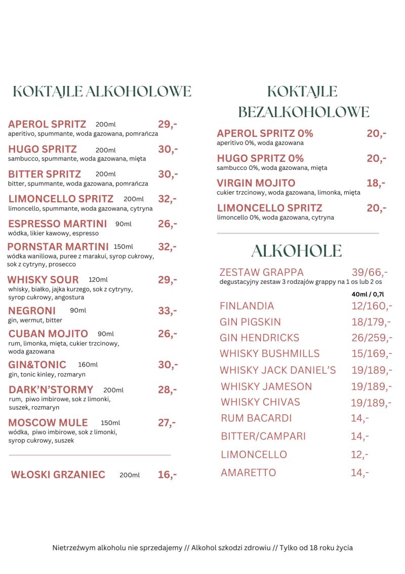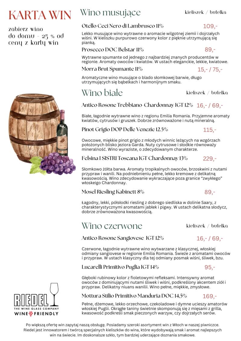 Środa: - 25% na pizzę i szprycery Czwartek: - 25% na dania z kuchni i wina Piątek: -25% na desery i koktajle