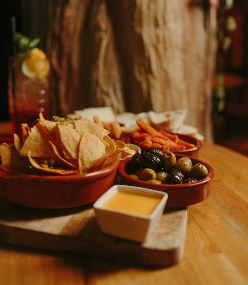Smaczne drinki, bardzo fajny zestaw frita - w sam raz dla 3 osób. W lokalu jest dość głośno i dość chłodno