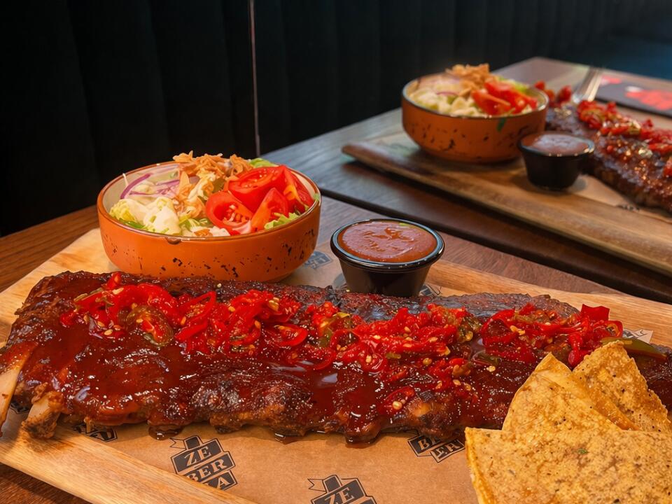 Zarezerwowałam stolik w Żeberka,po czym jak przybyłam na miejsce,pracownica wyraziła duże zdziwienie,ze u nich stolików się nie rezerwuje.Poczuliśmy się trochę zbici z pantałyku.Na szczęście było kilka stolików wolnych,ktore nam wskazała,zaznaczając,ze mamy zająć stolik dwuosobowy.Samo zarezerwowanie stolika przebiegło sprawnie i tu nie mam żadnych zastrzeżeń.Zamówiliśmy dwa rodzaje żeberka,na ktore trzeba było trochę poczekać,co było trochę irytujące z tego względu,ze do stolika obok,kelnerka co chwilę przynosiła dokładki.Ale i my w końcu się doczekaliśmy.Żeberka podane na desce,duża porcja,przepyszne- mięciutkie i pięknie wypieczone.Jednak uważam,ze do takiego dania powinno być podane naczynie na kości ( musięliśmy poprosić) I serwetki,bo tych kości inaczej jak palcami nie dało się odłożyć.Mam nadzieję,ze te sugestie są przydatne i restauracja weźmie je pod uwagę.Polecam Żeberka!👍